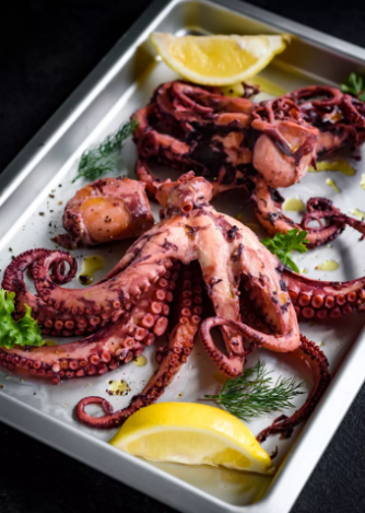 Cut the Octopus into 1 /2 inch pieces and put in a large glass or ceramic bowl with the potatoes. Add all the remaining ingredients and mix.